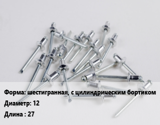 Заклепка шестигранная, с цилиндрическим бортиком 12х27 сталь