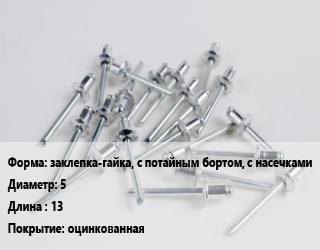 Заклепка заклепка-гайка, с потайным бортом, с насечками 5х13 оцинкованная