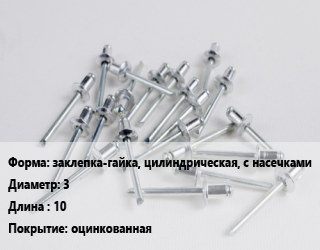 Заклепка заклепка-гайка, цилиндрическая, с насечками 3х10 оцинкованная