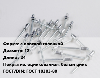 Заклепка с плоской головкой 12х24 оцинкованная, белый цинк ГОСТ: ГОСТ 10303-80